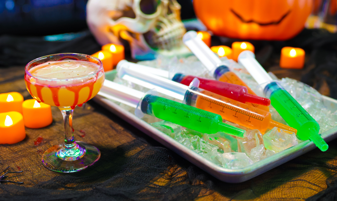 TRANSFUSION: A colorful and irresistibly fun shot of boozy Jell-O. Non-alcoholic option available.